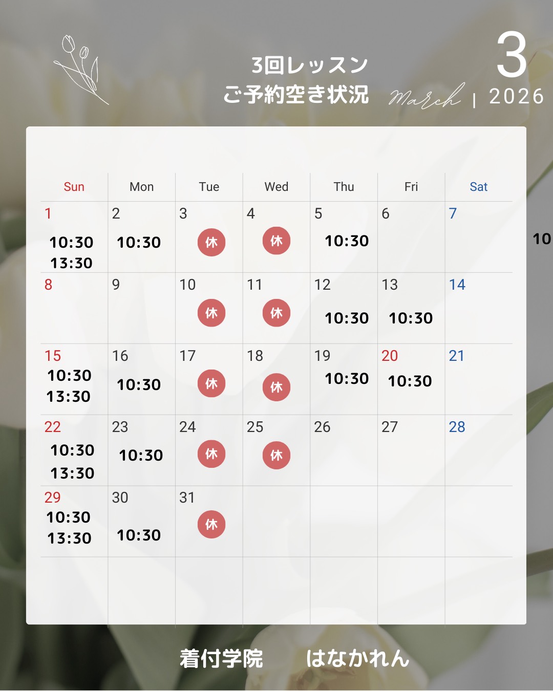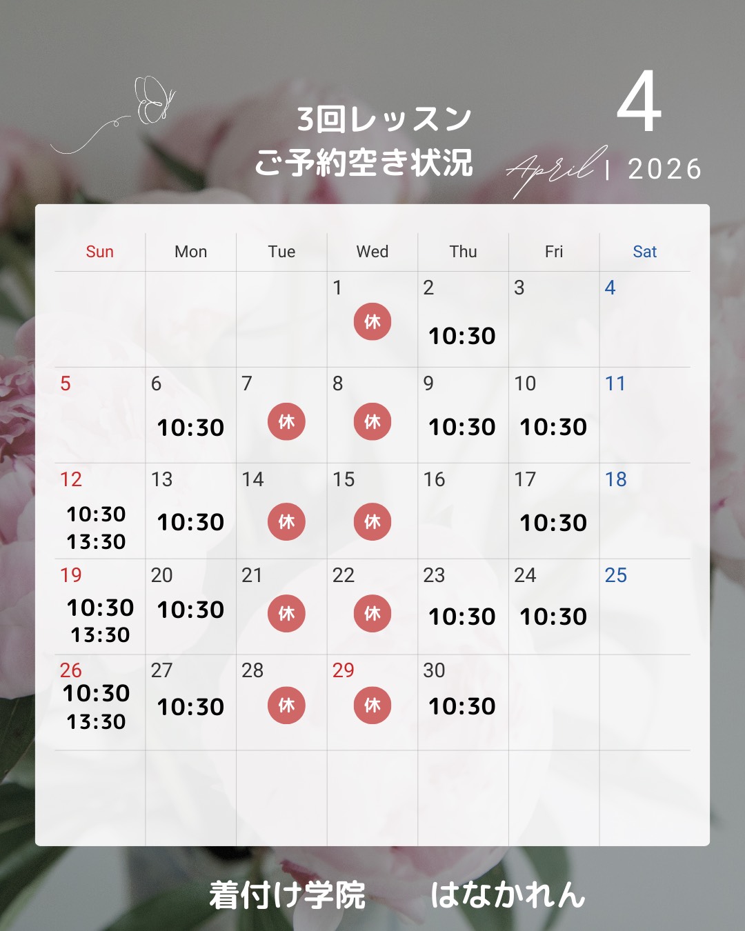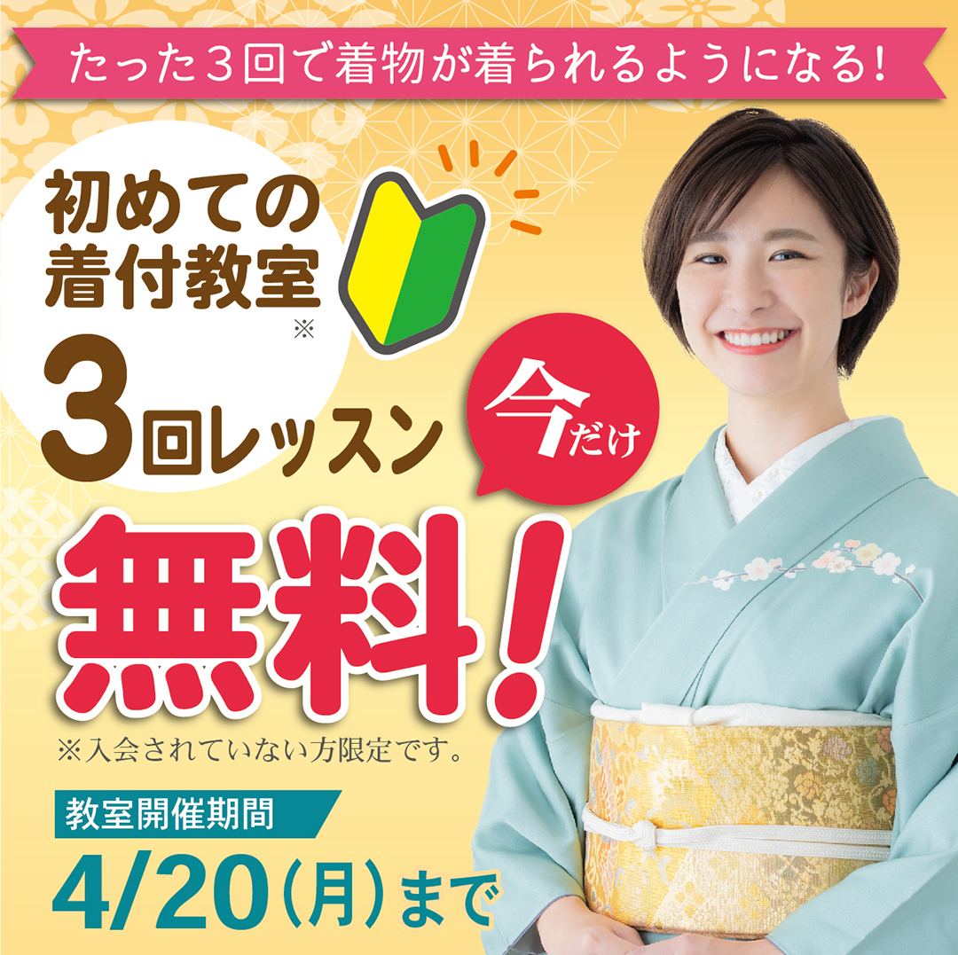 キャンペーンcampaign 梅岡(うめおか)|兵庫県姫路市の着物販売・着付け教室。 > キャンペーン > 初めての着付教室 3回レッスン無料 初めての着付教室 3回レッスン無料 2026.03.08 開催日 2026年3月9日から4月20日 会場 うめおか本社3F はなかれん お問い合わせ先 080-3816-0580(はなかれん) 予約フォーム お問い合わせをご希望の方は、お電話または下記のフォームをご利用下さい。 後日、担当者よりご連絡をさせていただきます。 お近くの店舗にお電話ください 必須参加キャンペーン 必須お名前 必須フリガナ 必須メールアドレス 年齢 選択してください 10代 20代 30代 40代 50代 60代 70代以上 必須電話番号 ご要望等 送信する 内容を送信すると、すぐに確認のメールをお送りします。 確認メールが届かない場合は、メールアドレスが間違っているため、 当社より改めて回答を送ることができません。 メールアドレスを確認し、再度送信して頂くかお近くの店舗までお電話ください。